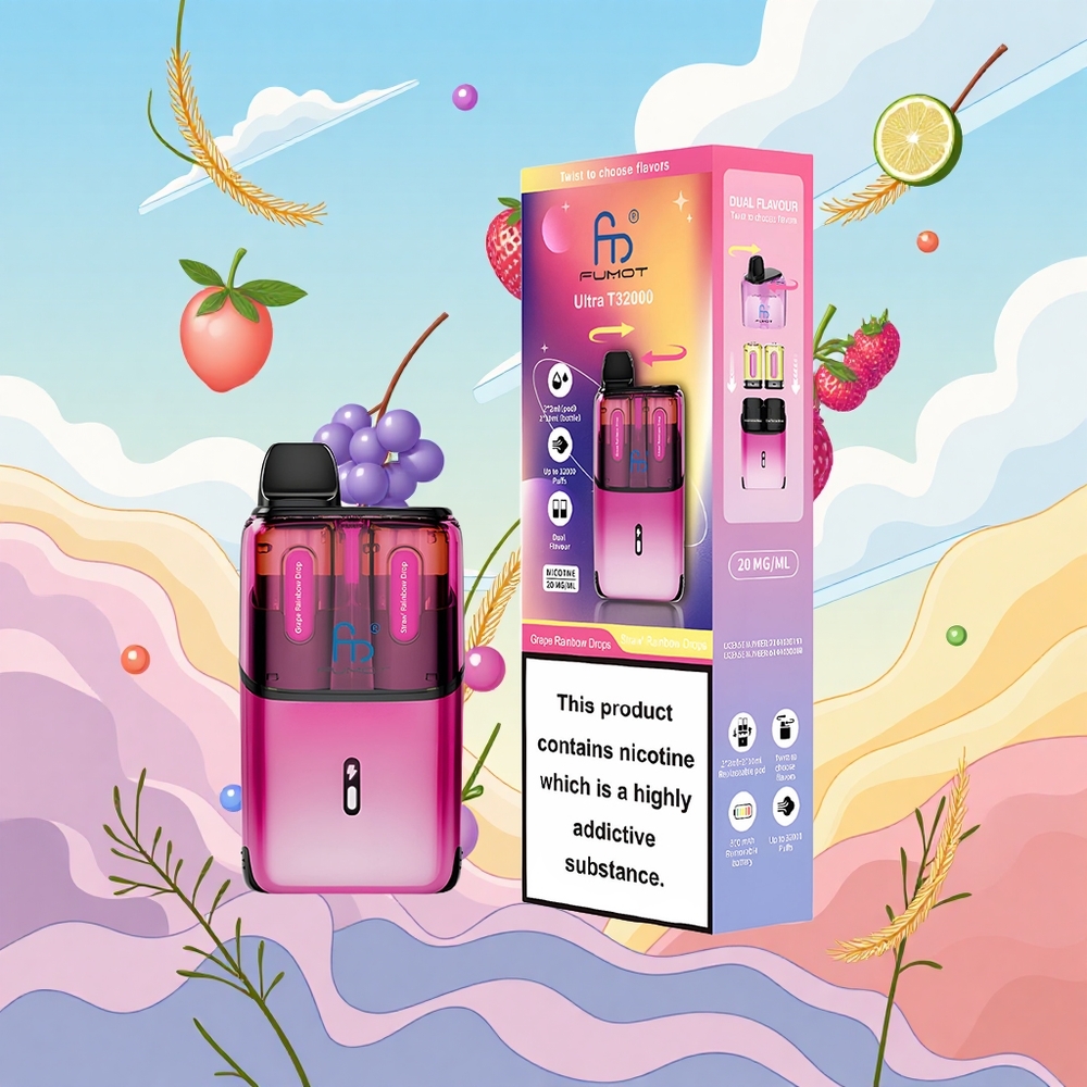 Fumot Ultra T32000 24ml Druiven Regenboog Druppels – Aardbei Regenboog Druppels